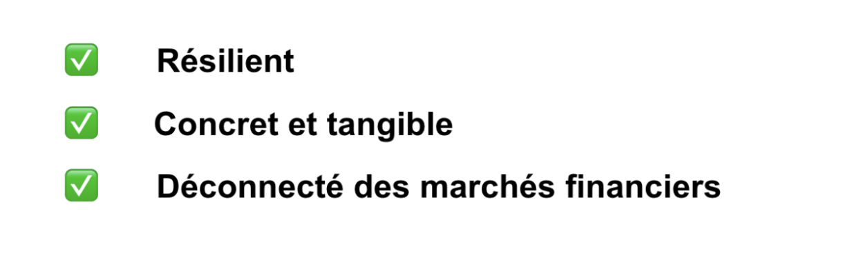 À l’inverse, les placements physiques et concrets qui font tourner l’économie réelle ne sont pas exposés à tous ces problèmes.